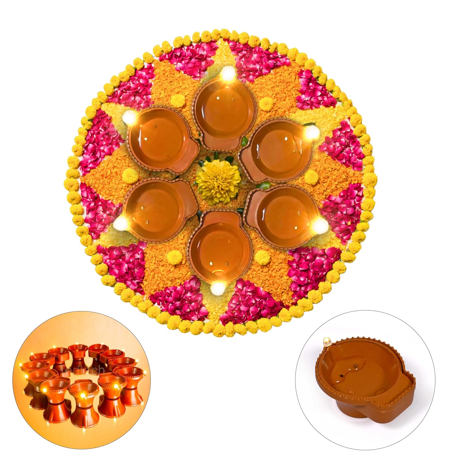 Introducing the Water Sensor LED Light Diyas/Deepak, flameless and smokeless warm ambient tea light diyas designed to enhance your Diwali, New Year, and home or mandir decor. These innovative diyas combine tradition with modern convenience, providing a safe and mesmerizing glow that captures the spirit of the festivities without the hassle of traditional oil diya.